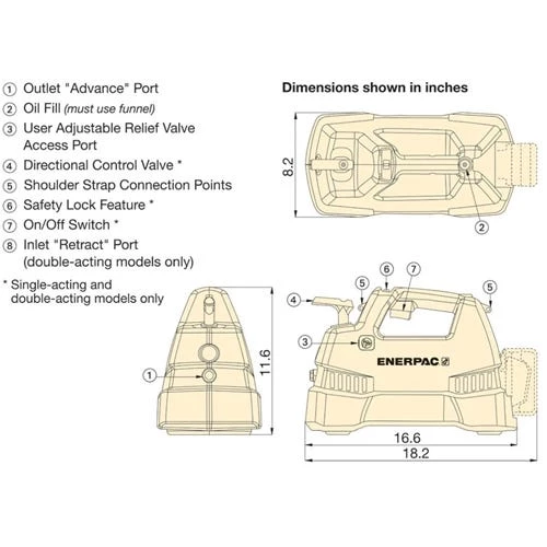 Enerpac XC-Series Cordless Hydraulic Pump 3/2 Valve 60 in3 Usable Oil (Tool Only) XC1201M